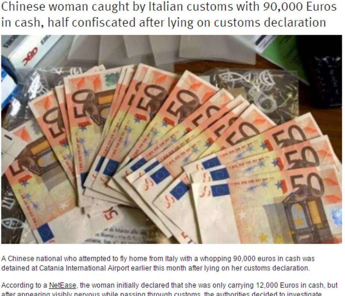 現金9万ユーロを隠し持った中国の女 イタリア税関で半分没収 15年12月28日 エキサイトニュース